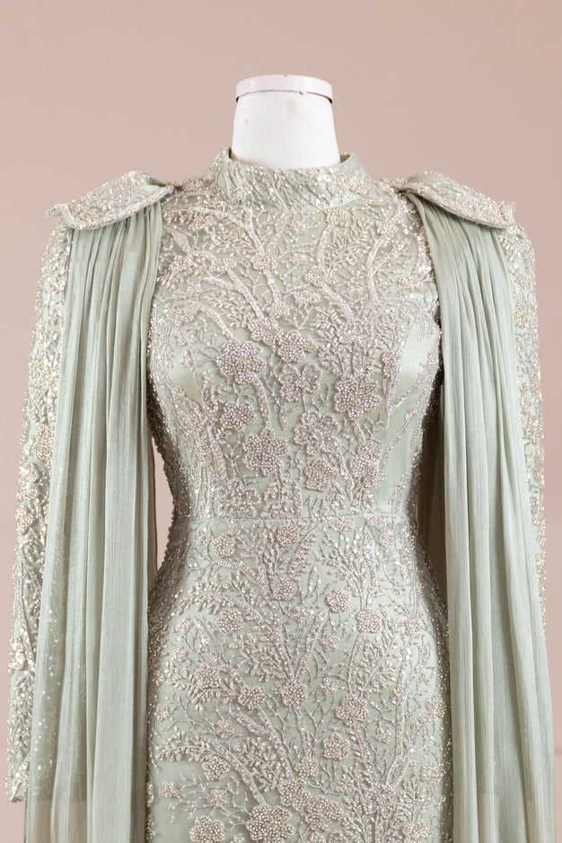 - التفاصيل: تفاصيل عباءة من قماش الأورجانزا على الأكتاف، مطرزة بالخرز