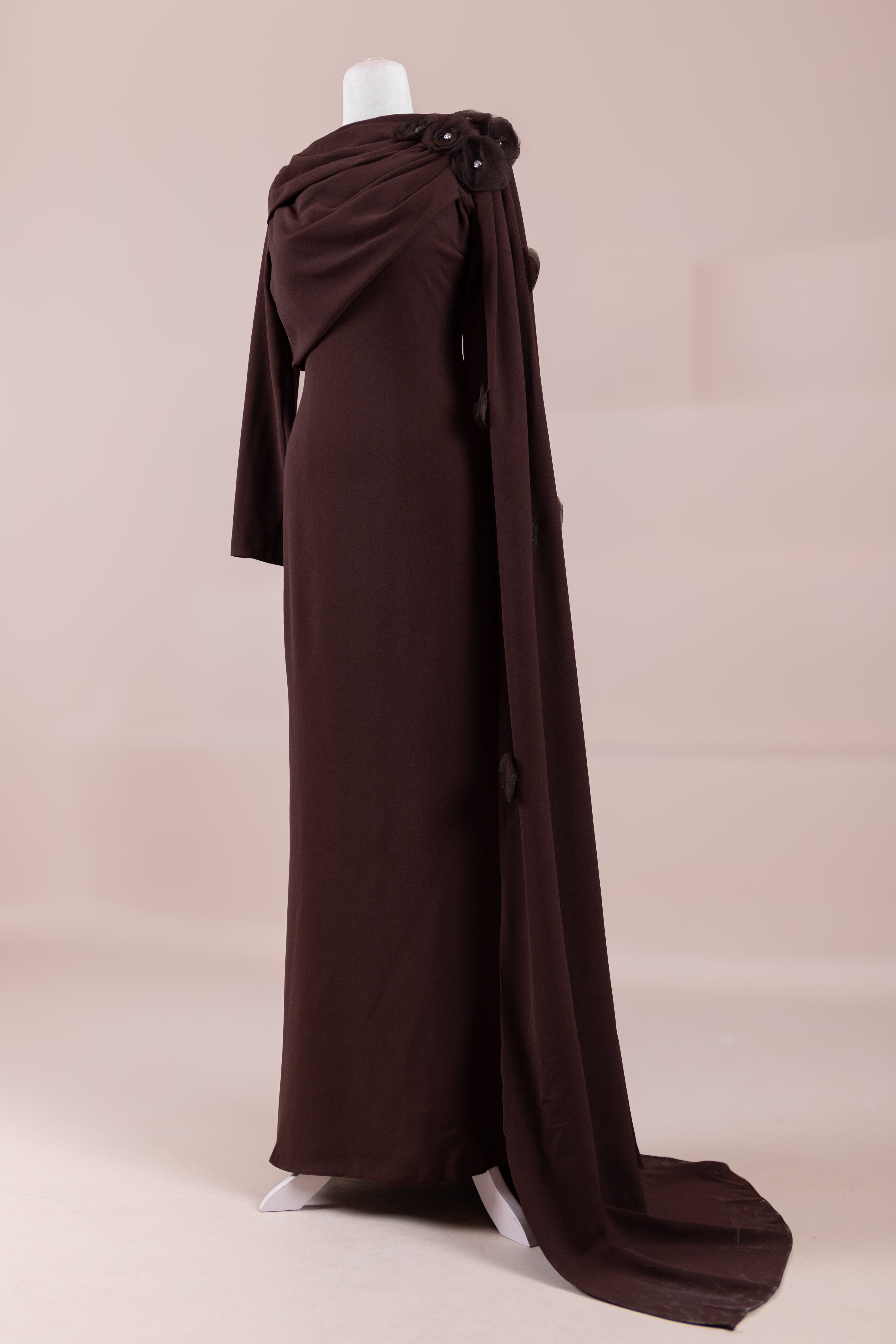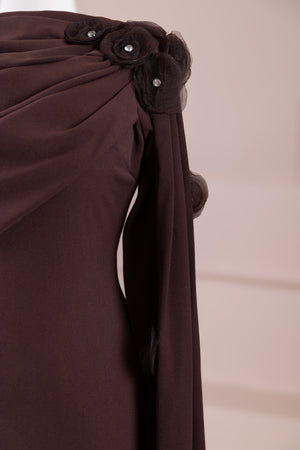 - التفاصيل: من الكتف مع عباءة، تفاصيل زهرية