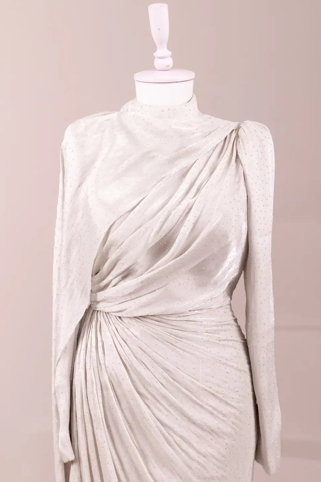 جلوري تيسيتور عبية، فستان أنيق ومحتشم مصمم للمناسبات الخاصة. هذا الفستان المناسب للنساء المحجبات يهدف إلى لفت الانتباه بأناقة بسيطة.