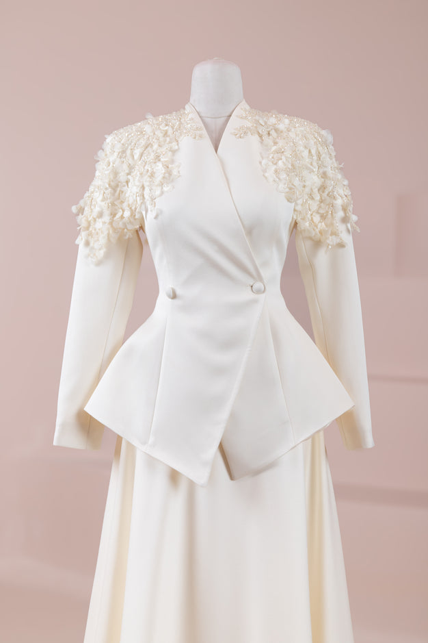 حافة التنورة (القطعة العلوية): شكل بيبلوم مكسور غير متماثل.