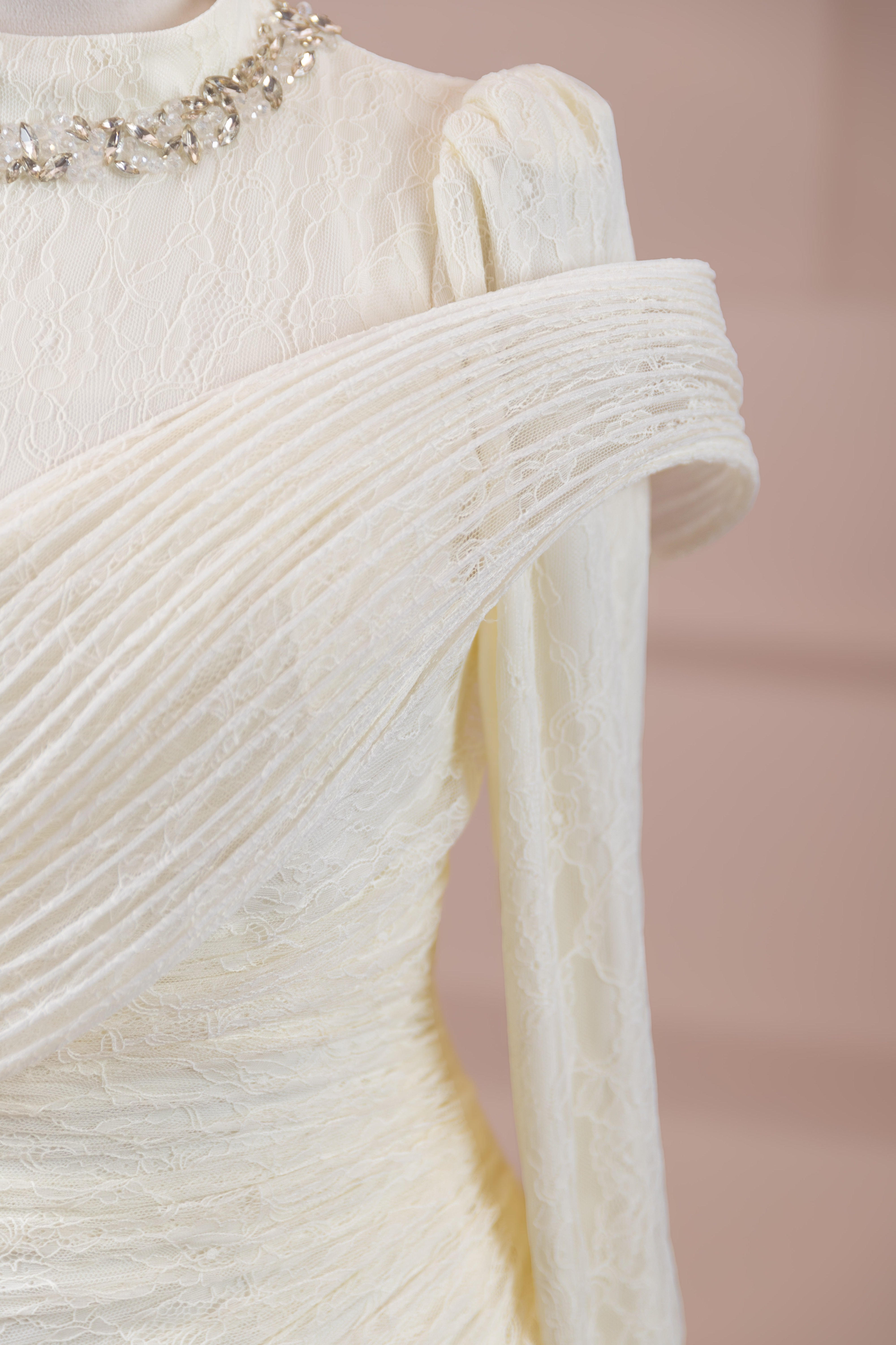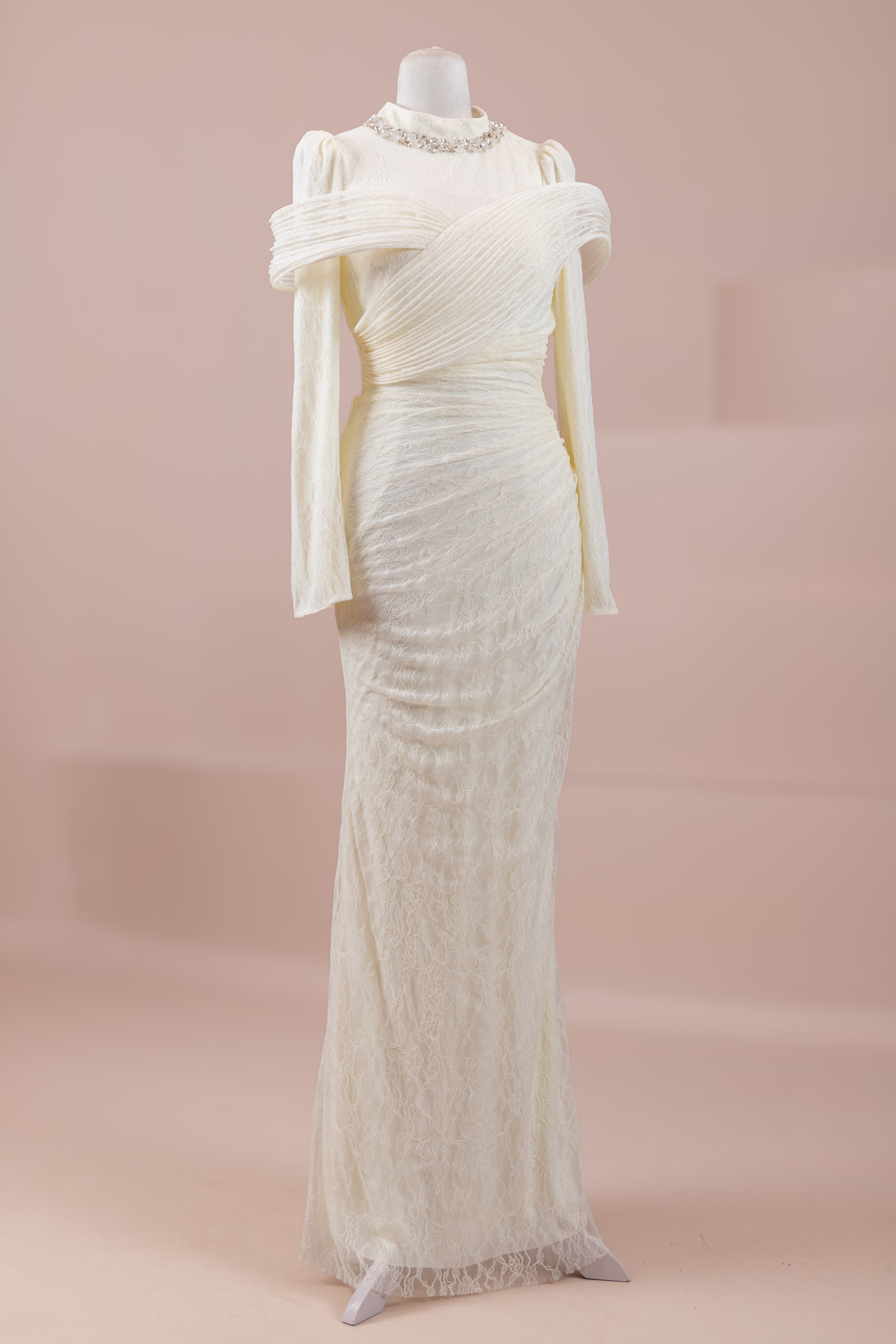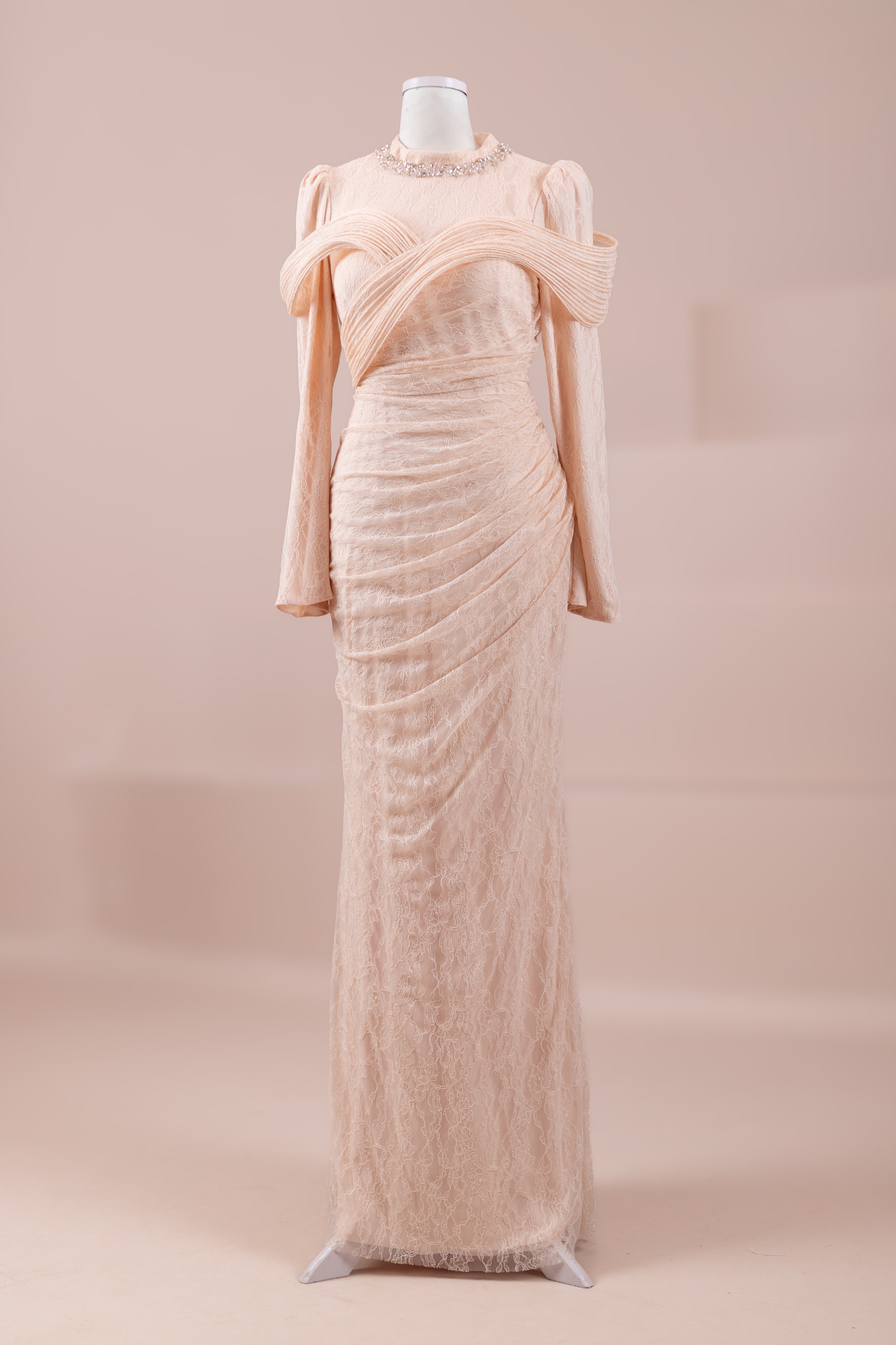 فستان سهرة محتشم بتطريز دانتيل من شارم