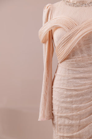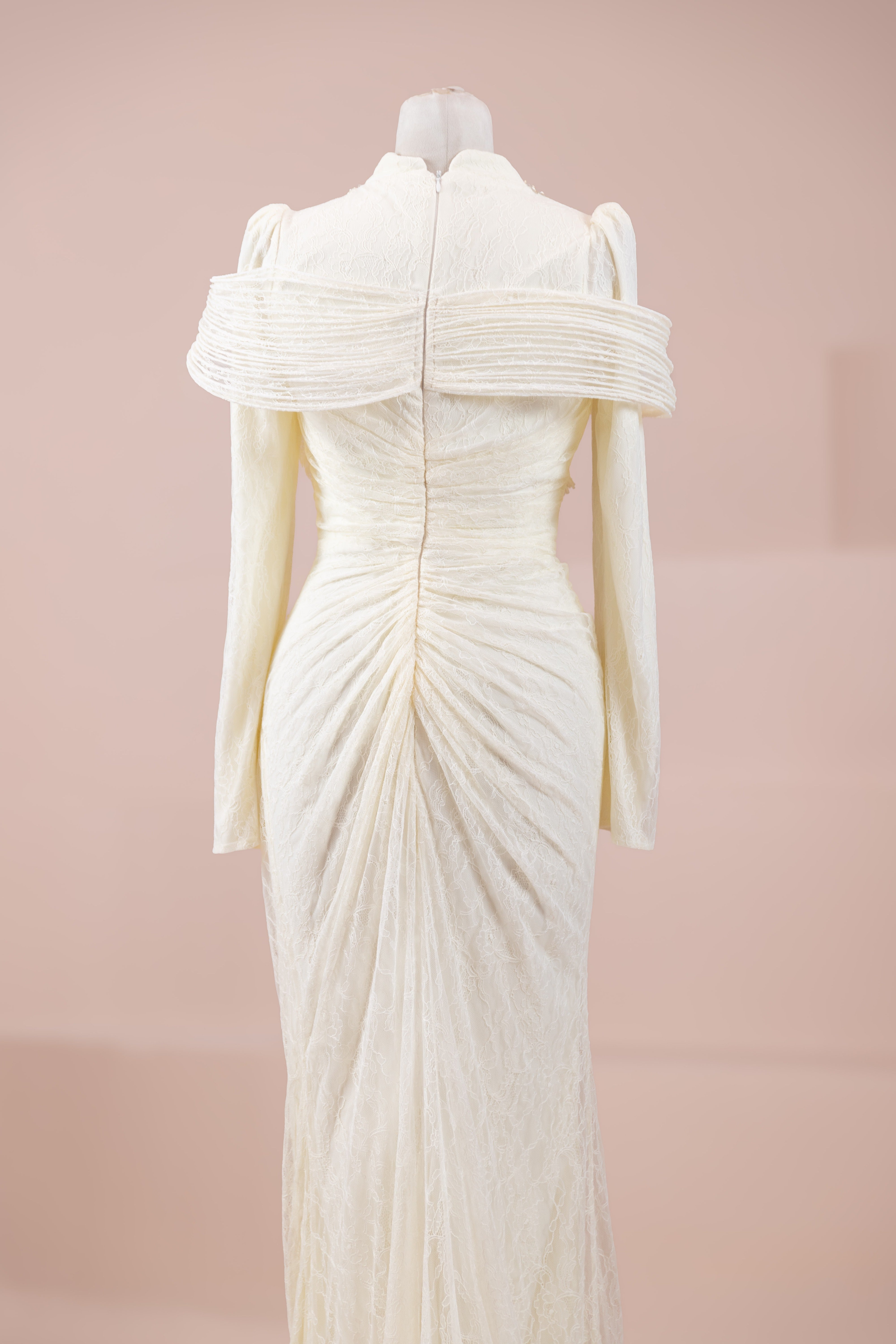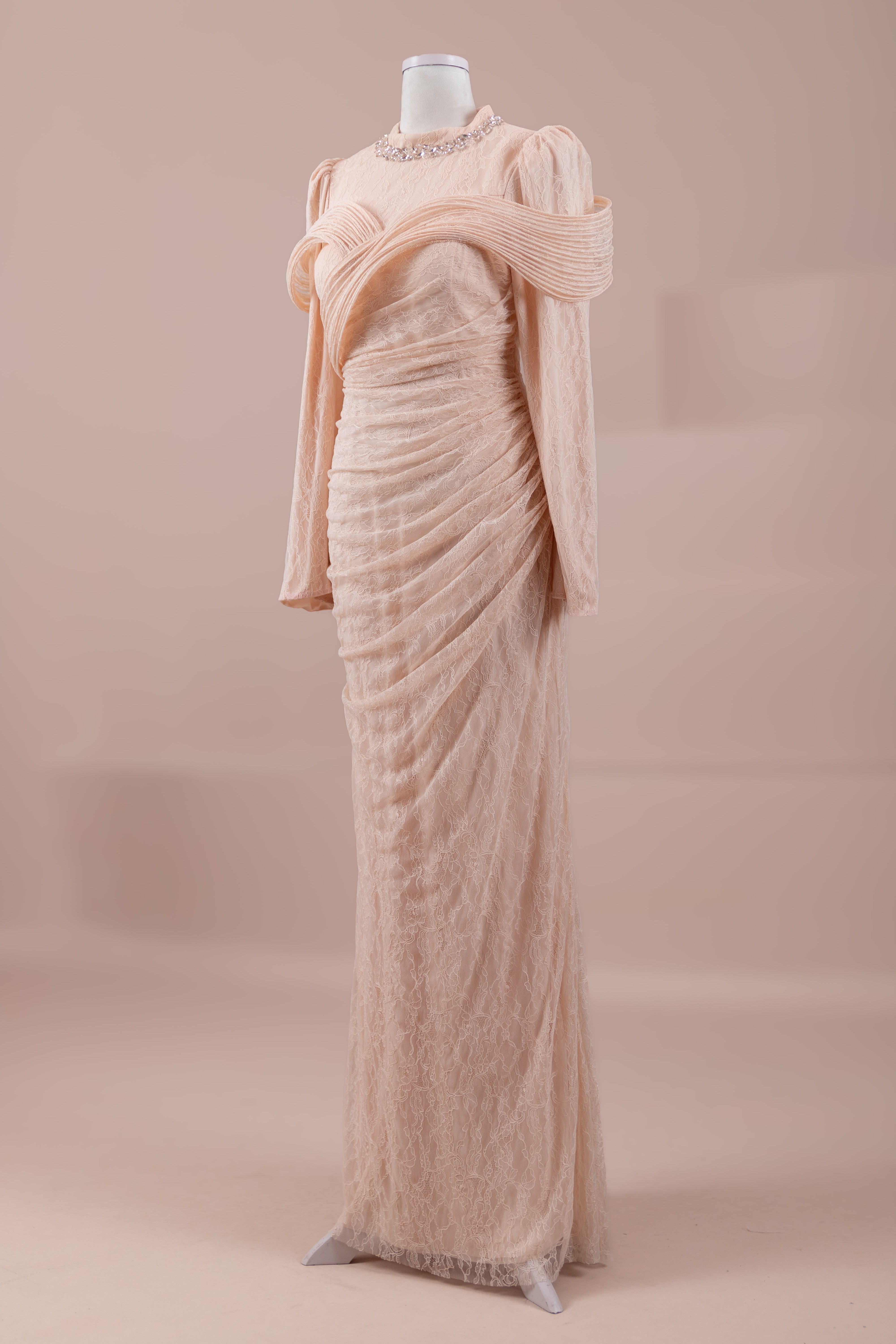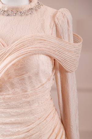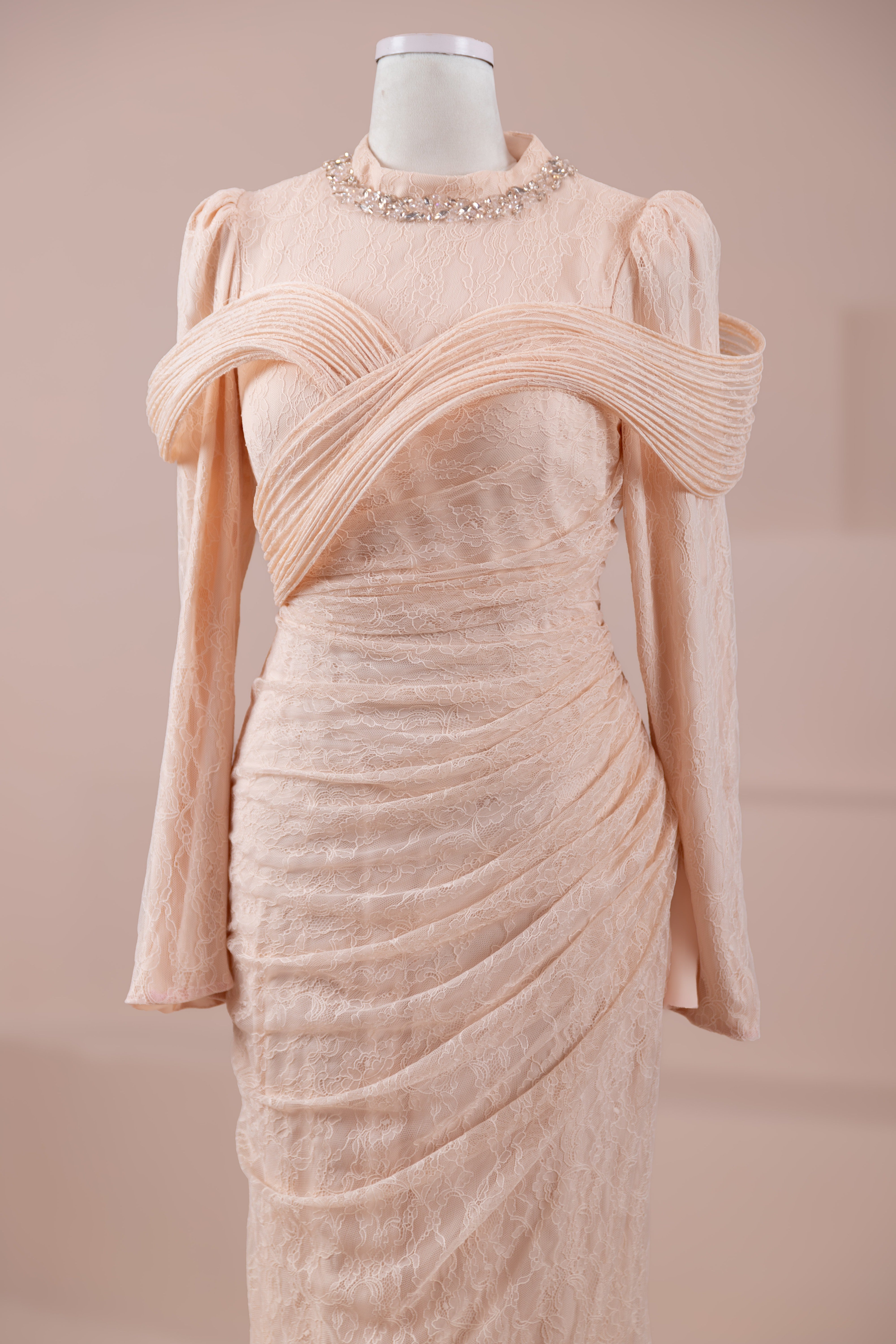 فستان سهرة محتشم بتطريز دانتيل من شارم