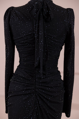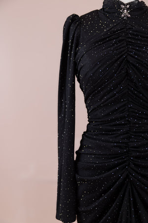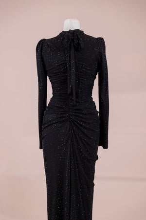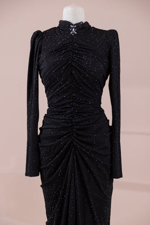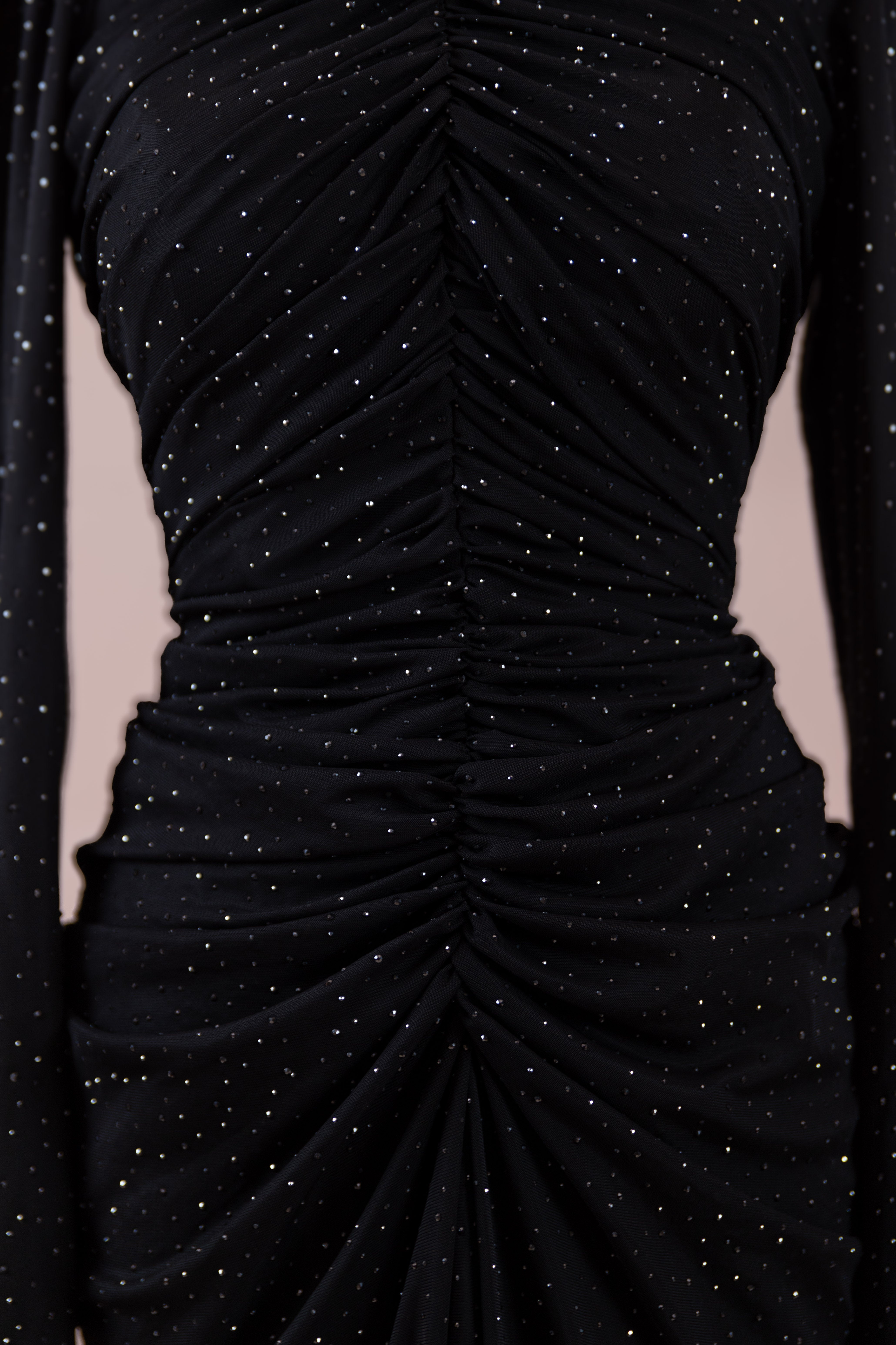 • هيكل مبطن من كريب ليكرا وتول مرن مطبوع بالحجارة