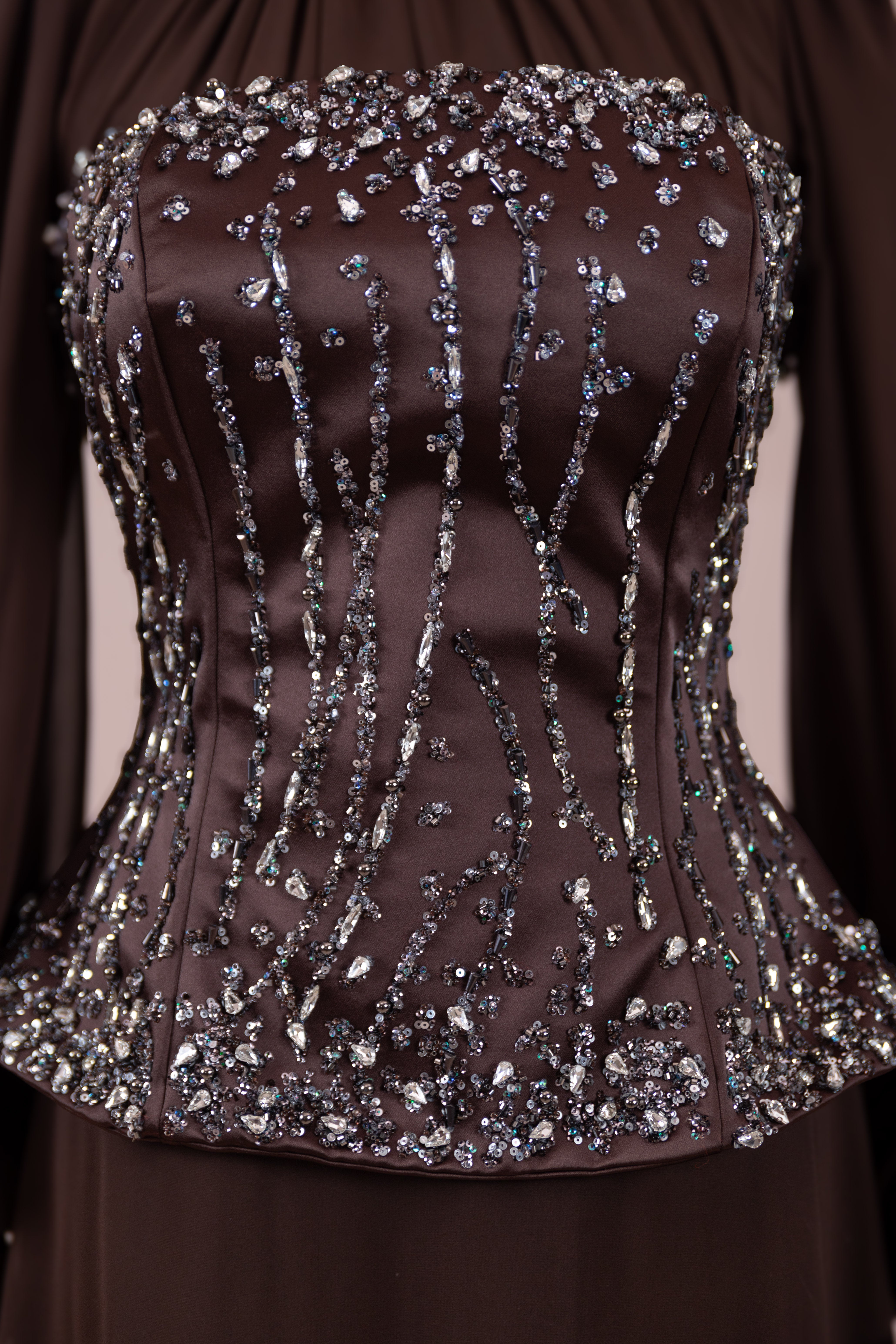 تطريز مكثف بالأحجار والكريستال على الكورسيه